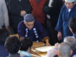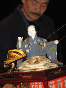 | 五枚尺鉋をはさんで上條先生と永六輔氏 | 九代玉屋庄兵衛の弓引き童子 |
