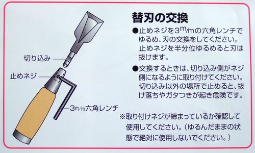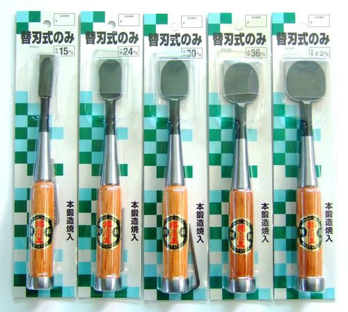 | ■ 刃の交換により新品同様、能率アップ ■ 取り替え式だから経済的 ■ 超合金を使用し特殊焼入れをしているので、最高の切れ味で長切れする。 ■ 刃先が薄いのでくい込みがよい。 ■ スクレーパー・タガネの用途にも使える。 ■ 使いやすさと安価な刃物。 □ 替刃には下記の3種類ありますが、ここでご紹介しているのは「合金鋼」です。 他の「ハイス鋼」「青鋼」についてはお問い合わせください。 (柄は共通なので刃だけ取り換えて使えます。) ◇ ハイス鋼・・・長切れ、集成材などの硬い木 ◇ 青 鋼・・・切れ味、長切れ重視 ◇ 合 金 製・・・安価で使いやすい ☆ 柄は小(3〜15mm)、中(18〜24mm)、大(30〜42mm)の3種類です。 |