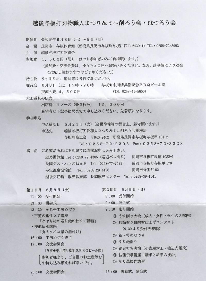 「第7回 越後与板打刃物職人まつり ミニ削ろう会」の様子は